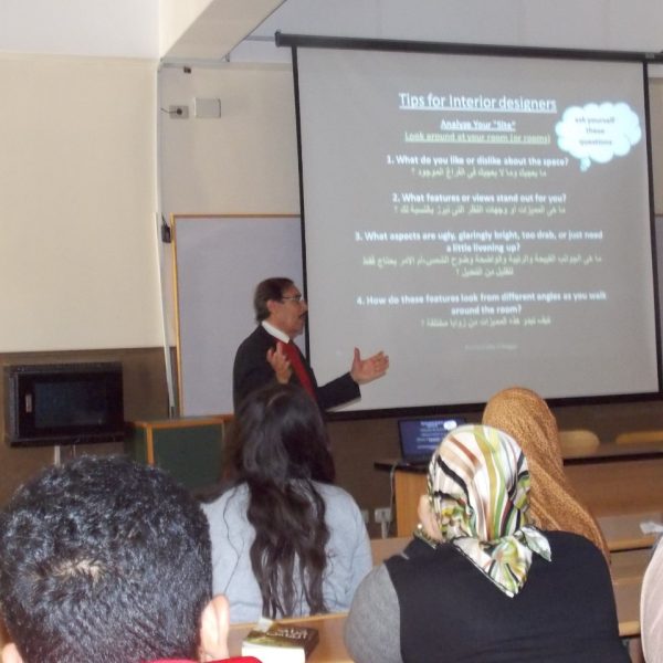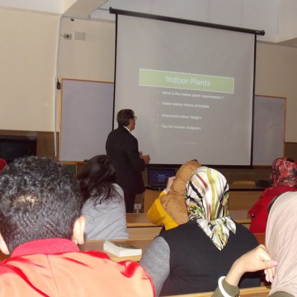 وقد تم إلقاءها لطلبة قسم الديكور بكلية التصميمات والديكور بجامعة فاروس بعنوان توظيف نباتات السوفت سكيب للديكورات الداخلية ..تحت رعاية الأستاذ الدكتور هشام الشيمي .